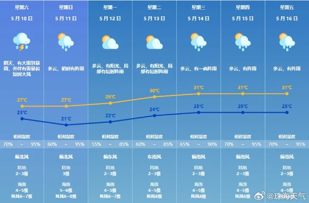 - 5月9日(周五):以多云天气为主,局部地区有分散性小雨,气温范围为20℃ - 25℃,湿度有所增大,出行时需随身携带雨伞,以防突如其来的小雨淋湿衣衫,影响出行心情和计划安排,就像在生活的旅途中,随时准备好应对未知的小插曲。